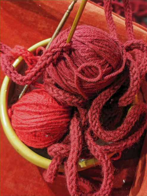 'Ties that Bind' delves into the often invisible labor of women, particularly the repetitive, unacknowledged tasks that form the backbone of domestic and social life. This labor encompasses physical, mental, and social aspects, reflecting the multifaceted roles women play. Using a simple burgundy yarn—Red Heart, a brand synonymous with practicality and accessibility—long, continuous crocheted chains are fashioned as both metaphor and material record of these efforts. The yarn’s ubiquity, its lack of uniqueness (no dye lot), and its medium weight mirror the perceptions of women's work: necessary, enduring, but frequently dismissed as ordinary.